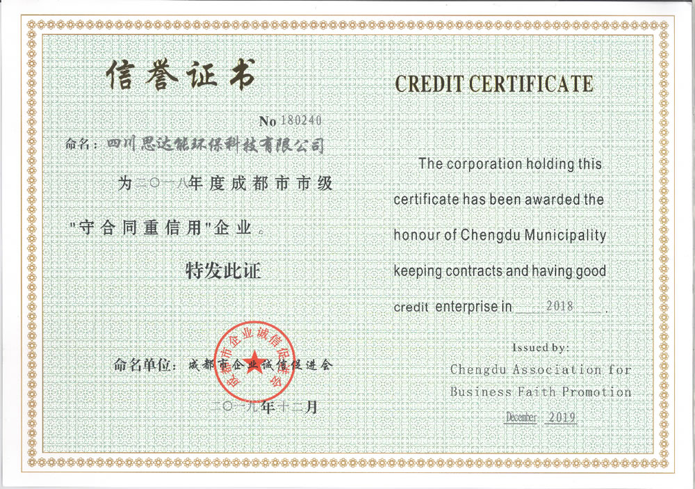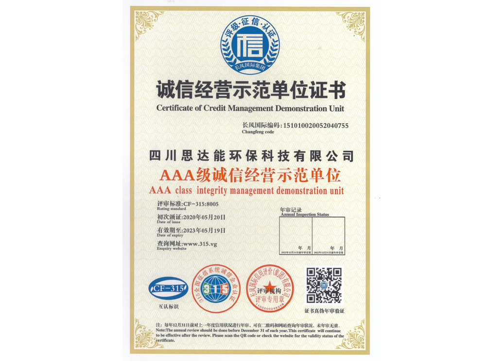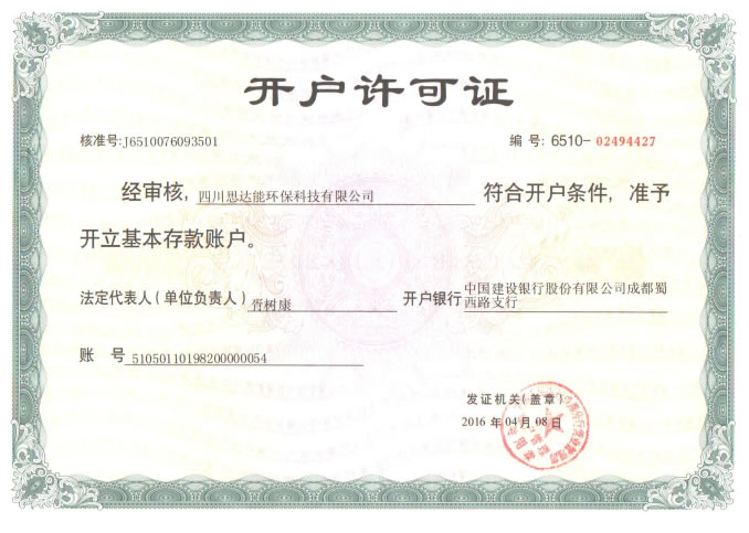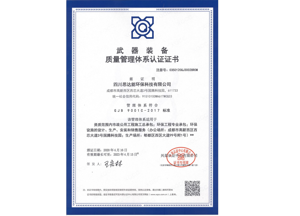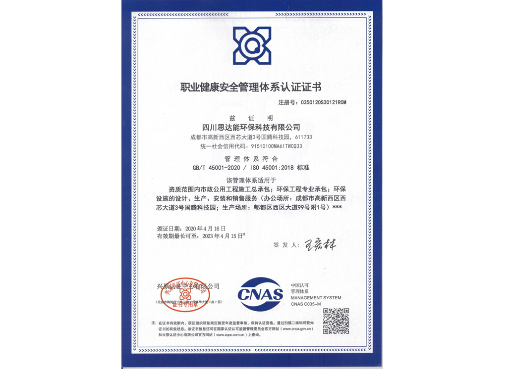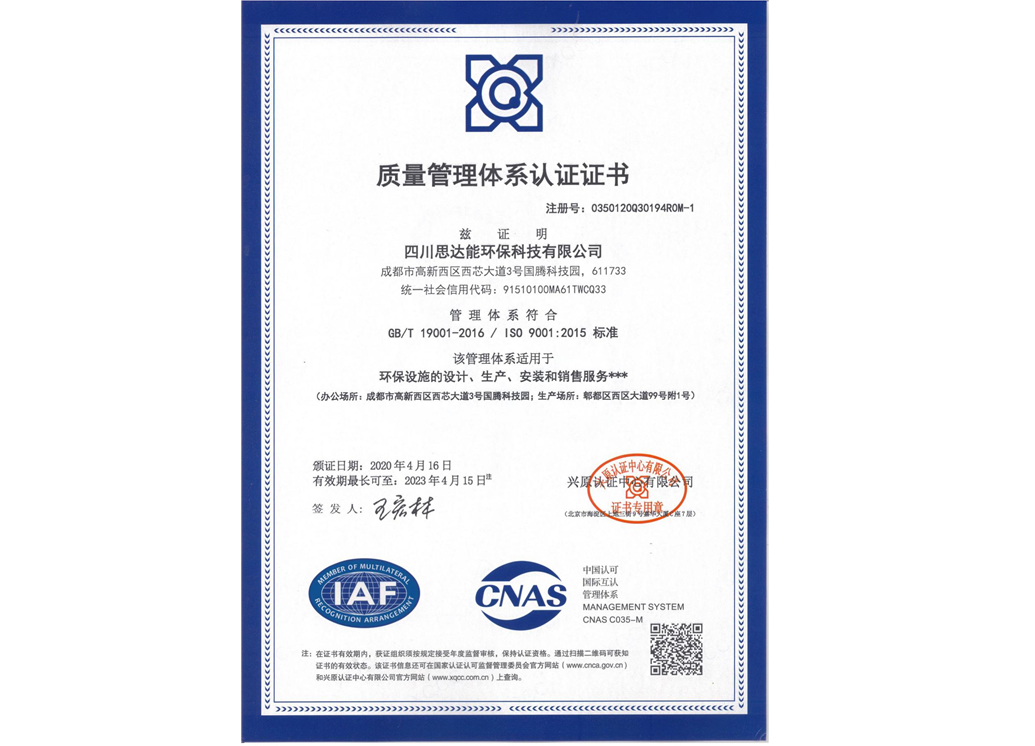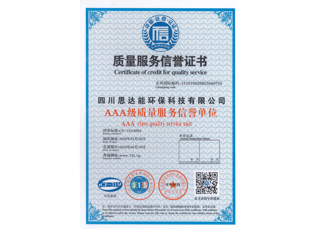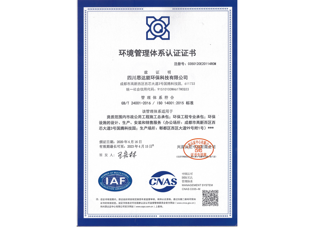 The company has two general contracting qualifications: Grade III General Contracting of municipal public works construction and grade III professional contracting of environmental protection works. Three class A qualifications: air pollution control, water pollution control and environmental protection equipment manufacturing. Three class B qualifications: comprehensive utilization of resources, noise and vibration, and solid waste treatment and disposal. The company has the evaluation certificate of the operation service capacity of pollution control facilities, "industrial waste gas treatment class II", "industrial wastewater treatment class II", "domestic sewage treatment class II" and "dust removal, desulfurization and denitration class II".